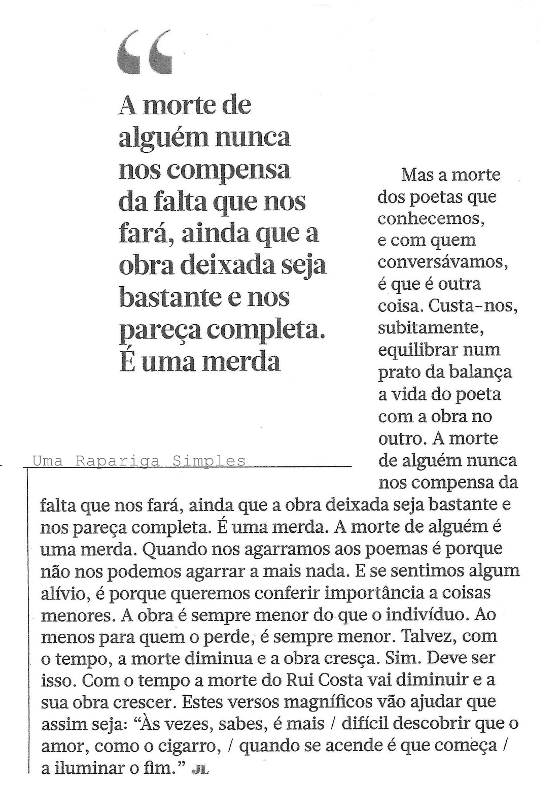 [este texto foi escrito pela primeira vez a 23 setembro 2008, publicado neste espaço a 13 de maio de 2009, mas nunca me fez tanto sentido como agora, porque nunca esta morte tinha sido física. contra todas as expectativas, hoje foi dia de prantear.]